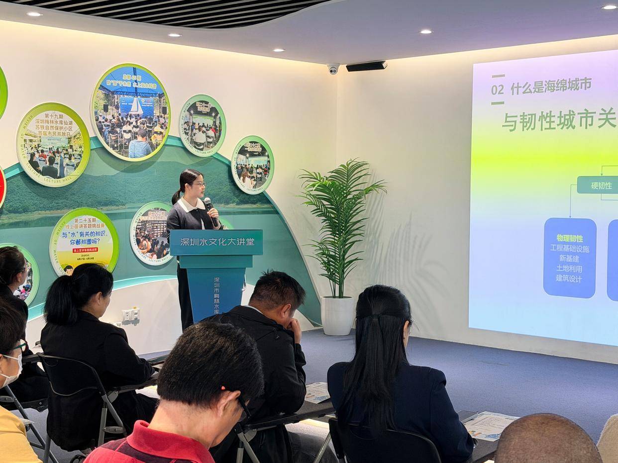 1月17日上午,深圳水文化大讲堂第69期活动在梅林水库水情教育展厅开讲。本期活动聚焦“韧性城市,自然蓄水”主题,特邀深圳市城市规划设计研究院高级工程师王爽爽担任主讲嘉宾,为现场市民带来了兼具专业性与通俗性的海绵城市科普分享。