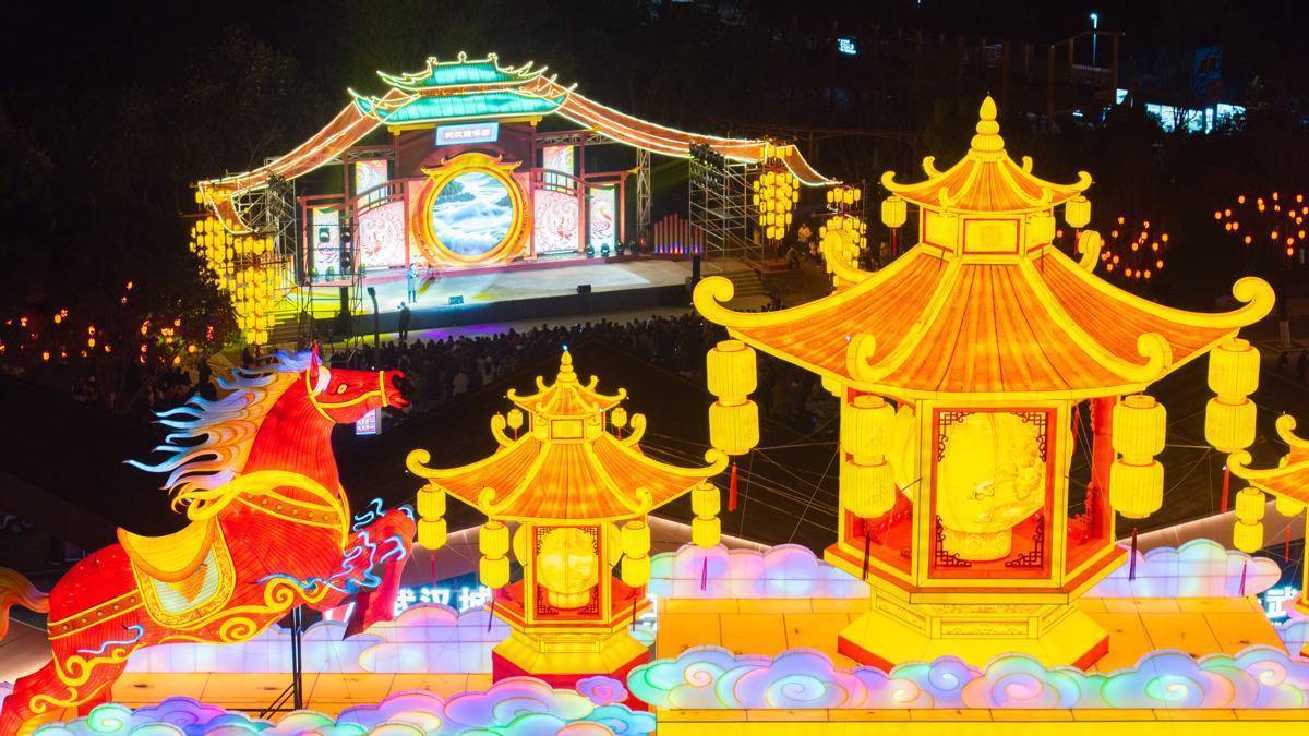2026年1月28日晚,“万马奔腾贺新春・千灯璀璨耀江城”第十届武汉园博园花灯会正式亮灯,为市民游客献上一场融合文化底蕴、科技光影与民生温度的新春文化盛宴。(湖北日报全媒记者 何宇欣 摄)