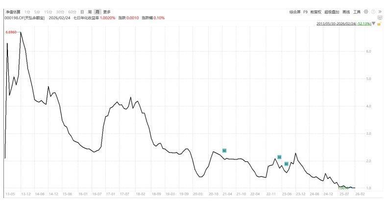 公开数据显示,进入2026年,余额宝7日年化收益率数次逼近“0字头”,但最终都守住了“1字头”大关。但在未来,余额宝进入“0字头”收益,或许只是时间问题。