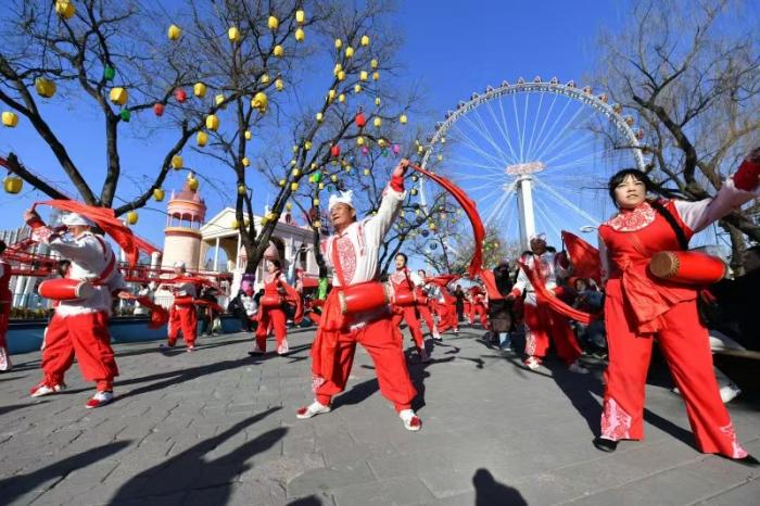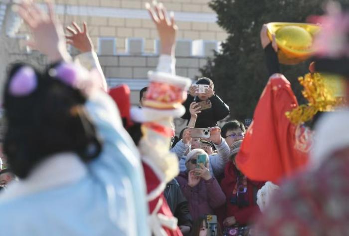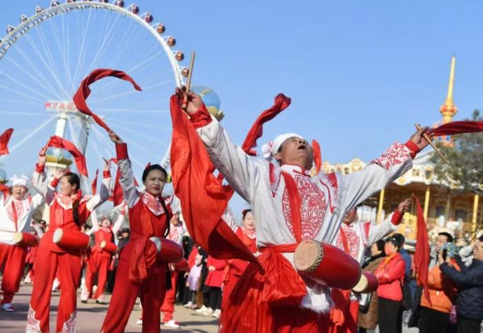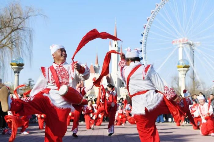 活动在铿锵有力的非遗安塞腰鼓中拉开帷幕。鼓手们身姿矫健,以刚劲豪迈的舞姿展现了黄土高原的非遗民俗,引得现场游客纷纷驻足,掌声与喝彩声此起彼伏。
