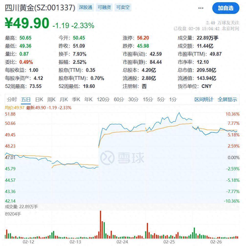 2月25日晚间,四川黄金公告称,为满足主体业务发展的资金需求,优化资产结构,持股5%以上股东北京金阳计划自公告披露之日起15个交易日后的3个月内,以集中竞价或大宗交易方式合计减持不超过890万股,占公司总股本比例不超2.119%。