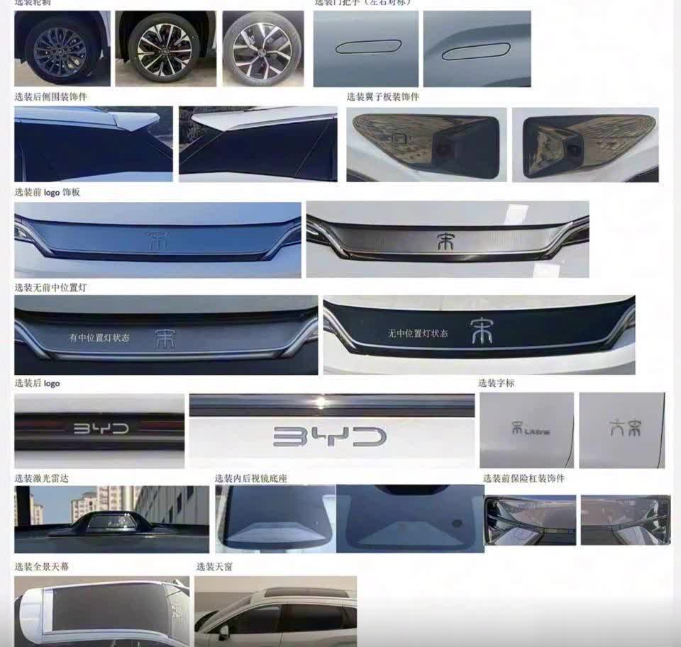 外观设计上,从首张预告图来看,结合此前曝光的申报图,新车延续比亚迪宋家族化设计语言,同时融入全新纯电设计元素,兼顾时尚感与运动气质。前脸采用封闭式格栅,契合纯电车型身份,搭配造型犀利的LED大灯组,灯腔内部细节精致,点亮后辨识度拉满;前包围采用三段式进气布局,两侧通风口尺寸加大,既强化运动气场,又能为电机与电池系统提供充足散热,整体造型比宋L DM更显大气舒展。车顶预留激光雷达安装位置,预计搭载天神之眼B高阶辅助驾驶激光版(DiPilot 300),为高阶辅助驾驶提供硬件支撑。