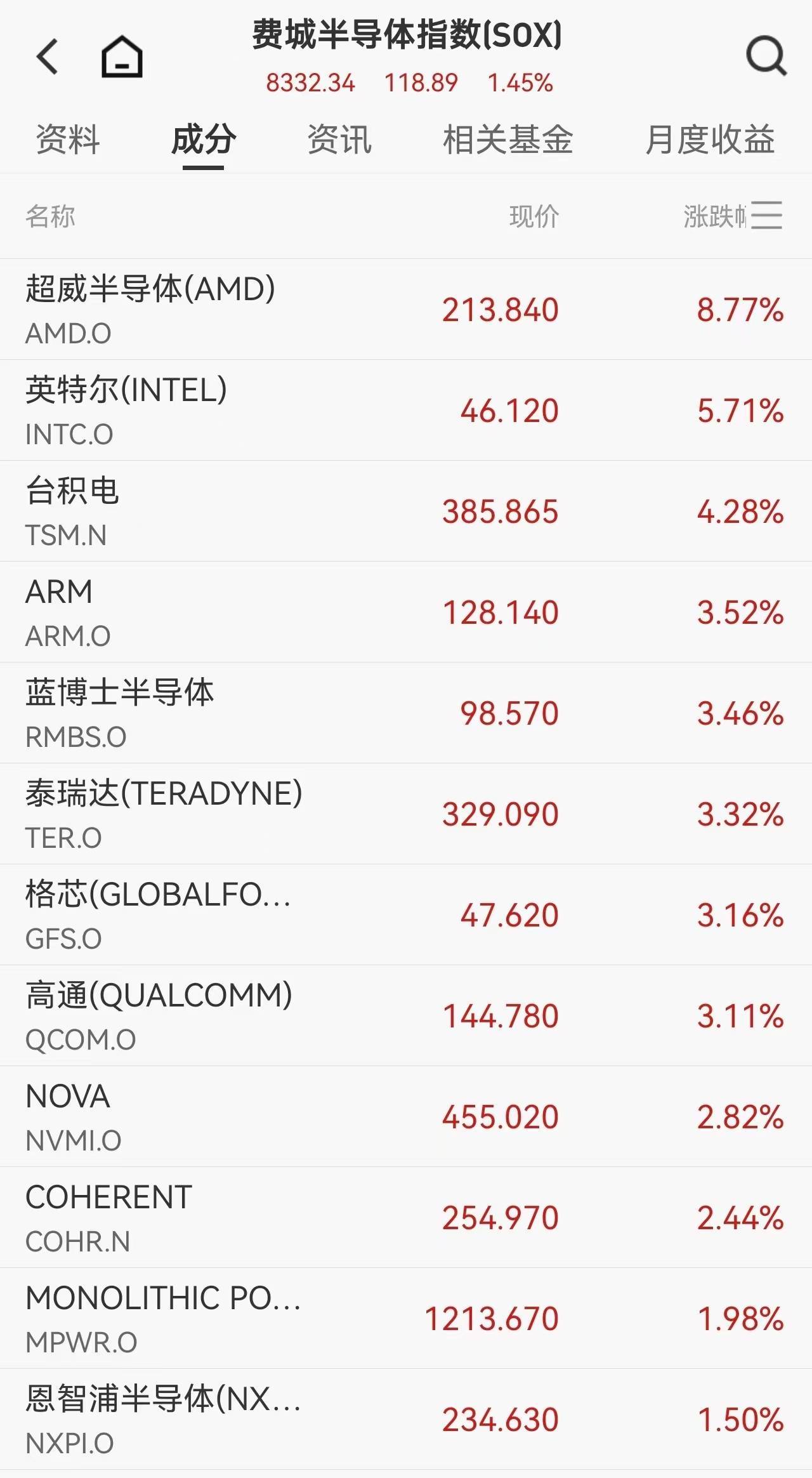 科技股成为拉升主力,半导体板块尤为亮眼。超威半导体(AMD)股价大涨8.77%,此前Meta宣布与其达成一项多年期合作协议,双方将为Meta的AI数据中心部署最高6吉瓦的AMD GPU算力芯片,这笔订单价值高达600亿美元。同时,Meta有权以0.01美元的价格认购AMD最多10%的股权,进一步巩固了双方的战略绑定。