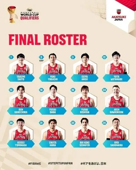 北京时间2月28日,男篮世预赛窗口期,日本男篮迎战韩国男篮赛前,日本男篮公布了与韩国队的12人名单,替换了两人,霍金森回归换了科克,佐土原辽替换渡边飞勇。